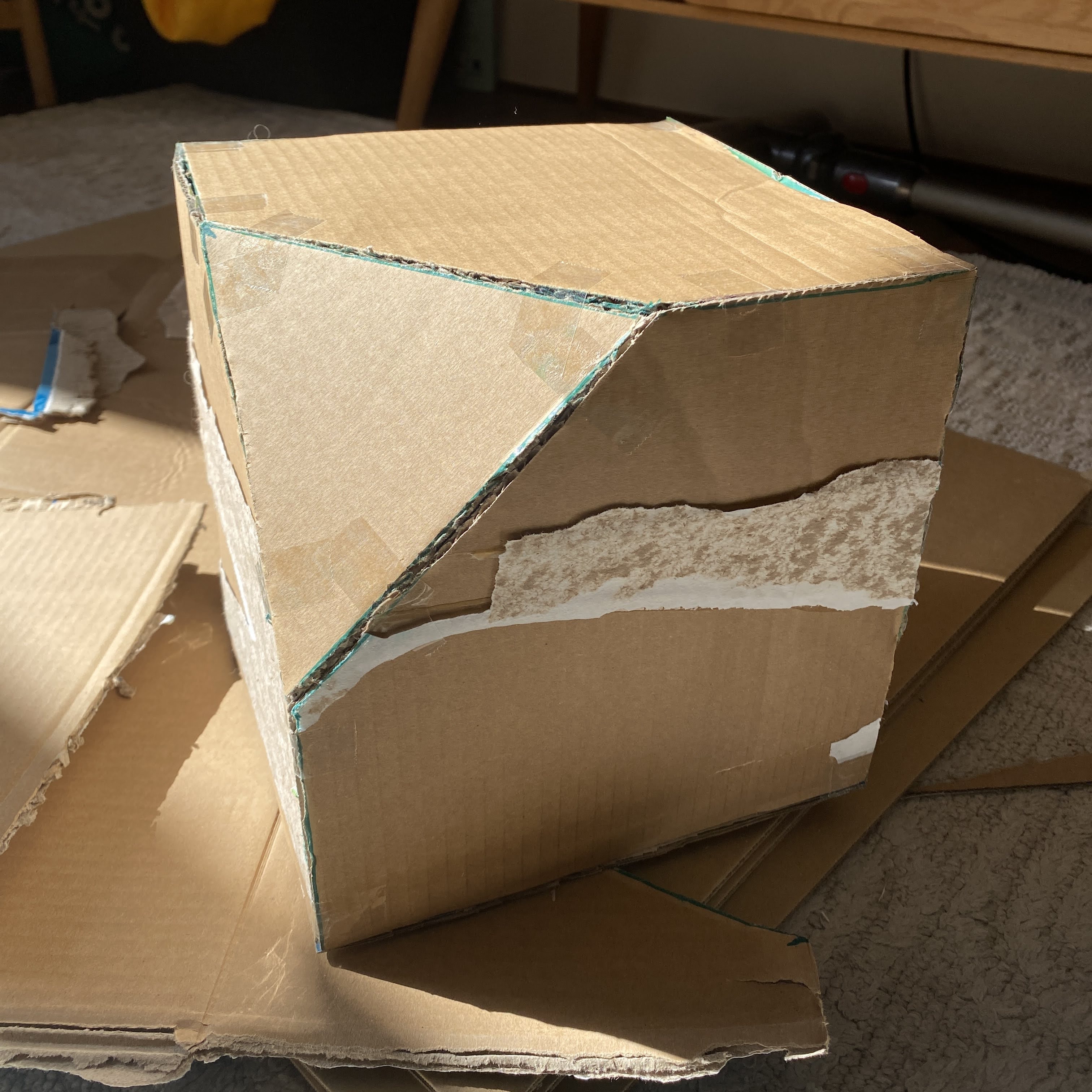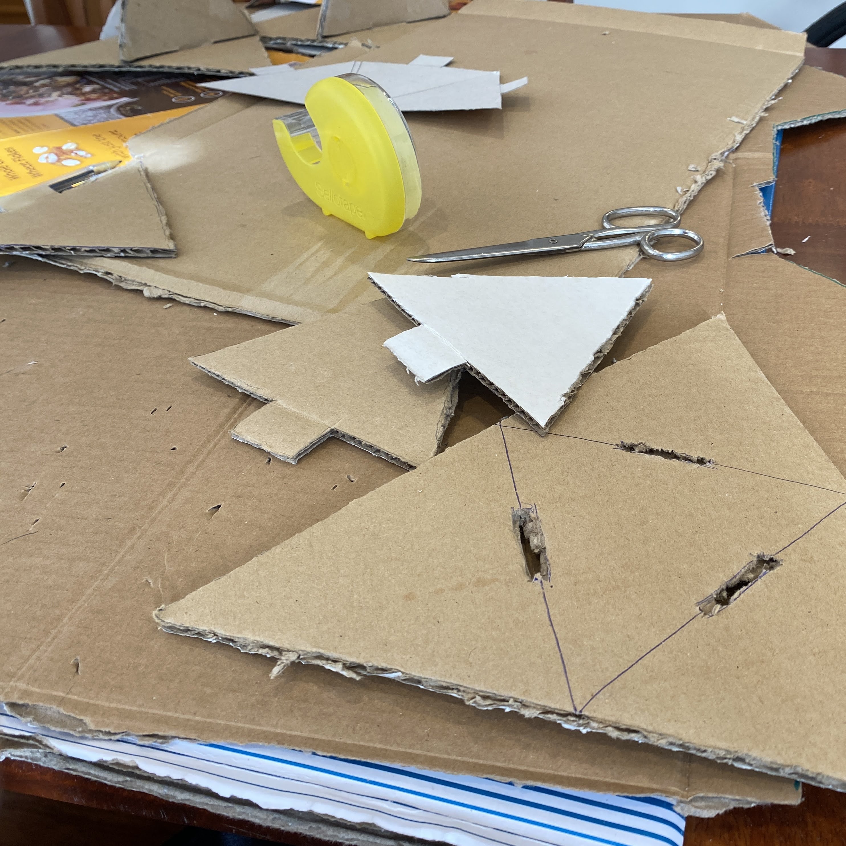 One of the first practical steps that I took (after thinking and sketching) was to create some cardboard mock-ups of potential sculptural forms: