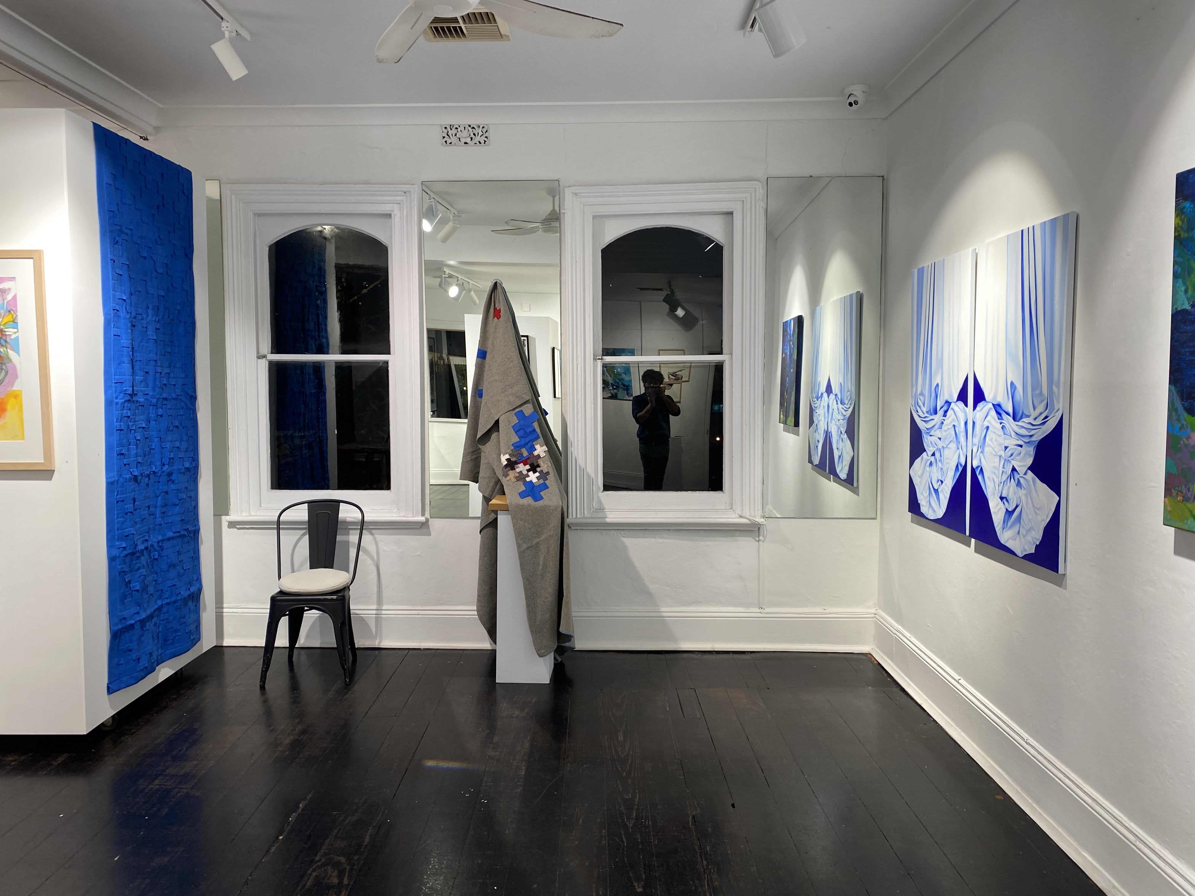 Two of my works – From the Deep Waters of Sleep and Emergency Blankets (Applique) – have been beautifully installed by Mark Wotherspoon as part of ‘Two Feet Forward (part 1)’ at Ellipsis Gallery: