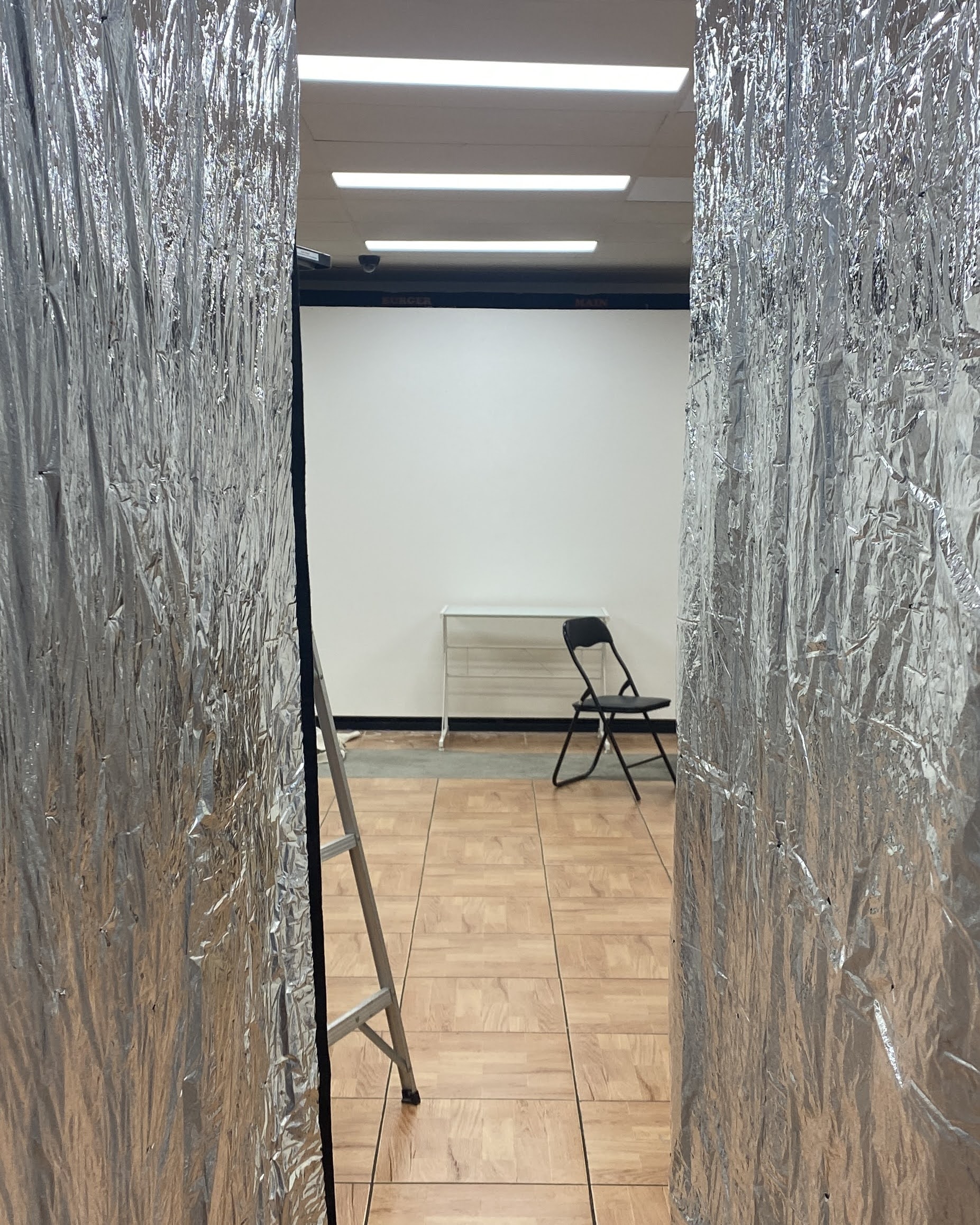 I dropped in to Pari on Thursday to begin the installation of my Emergency Blankets for ‘Remedy’ organised by Emma Cao, Emma Harding, and Tian Zhang. Many thanks to Tian Zhang, Emma Harding, and Kalanjay Dhir for their support with the install: