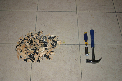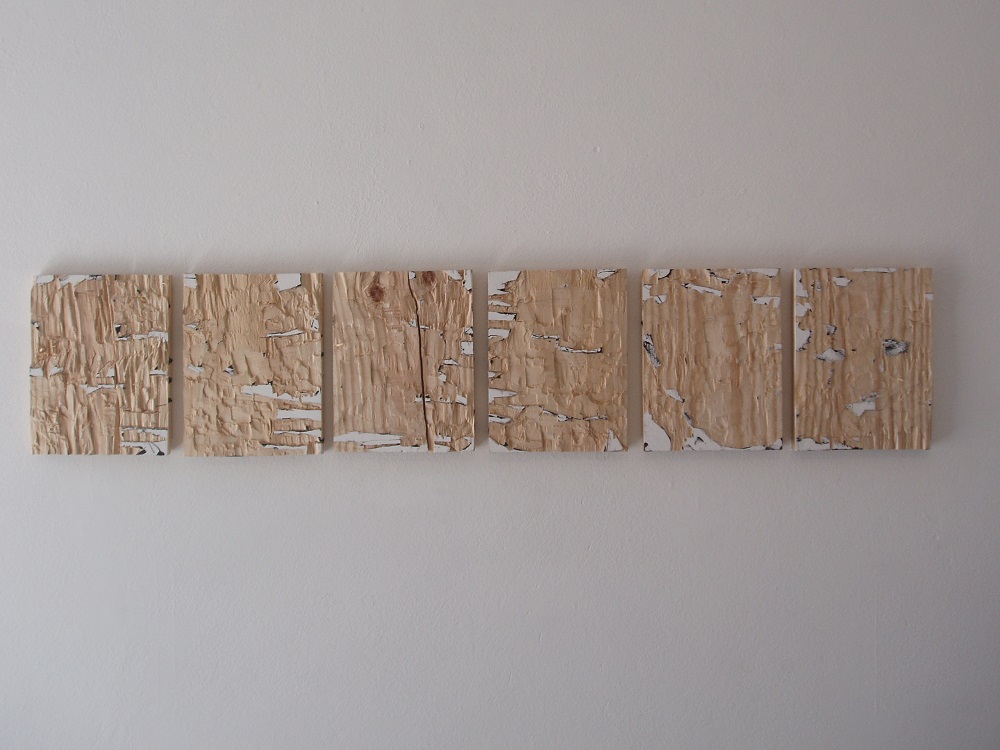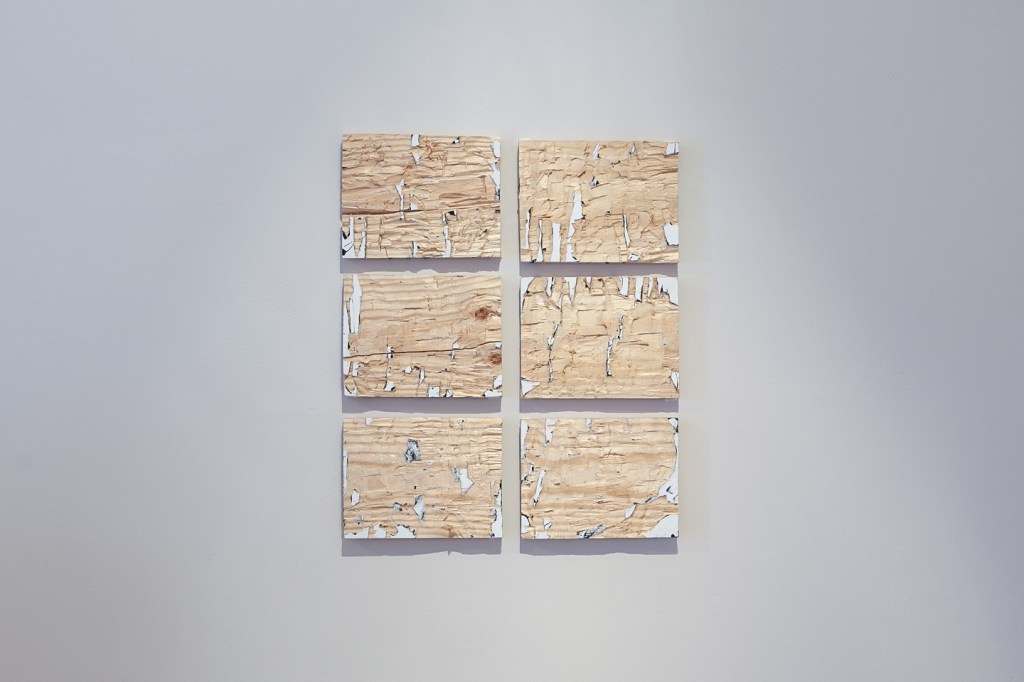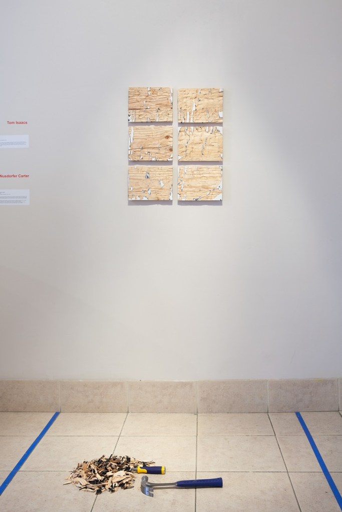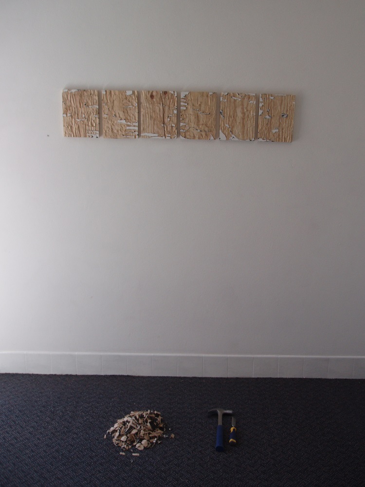 Chisel Piece was a live performance and installation for the exhibition ‘actingUP’ at At The Vanishing Point, Newtown. For this performance I attempted to chip away all the black paint from the surface of the six paintings on wooden canvases, leaving behind new art objects. The performance remains were later exhibited at ESP Gallery as part of my solo exhibition ‘Critical Tension’.