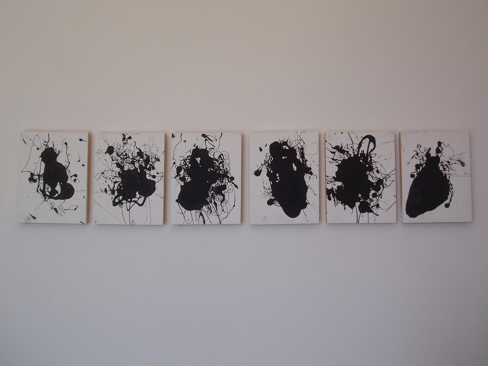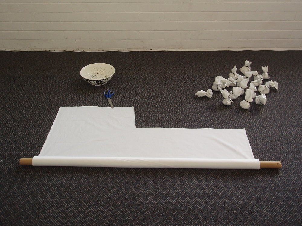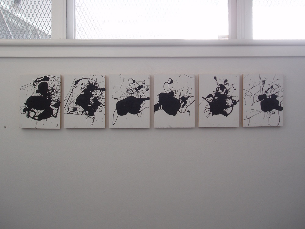 The series of work exhibited in ‘Critical Tension’ explored the notion of the physical evidence left over after a performance. It began with an investigation of my painting and performance practices and their interrelation, before moving into a more general investigation of my relationship to performance documentation and artifacts. The process I explored in ‘Critical Tension’ was the production of paintings that were created as a direct result of a performance, so that they were simultaneously paintings and performance artifacts.