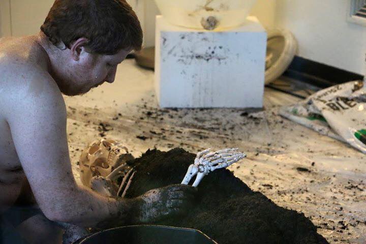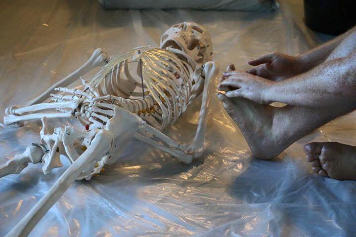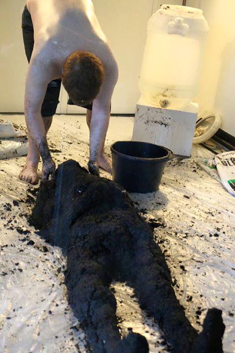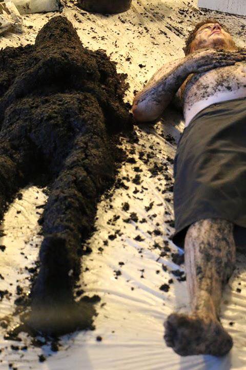 I performed Can these bones live? as part of ‘Rubberneck’ curated by Julie Vulcan. For this performance I rubbed petroleum jelly onto a skeleton and then onto my own body. Then I mixed dried manure with water and sculpted a body for the skeleton. Finally, I covered myself in wet manure and lay down next to the skeleton for the rest of the hour.