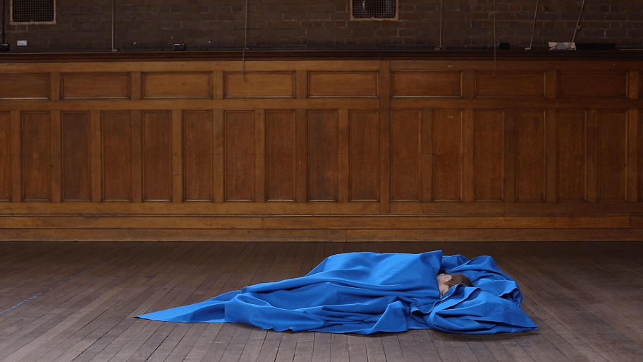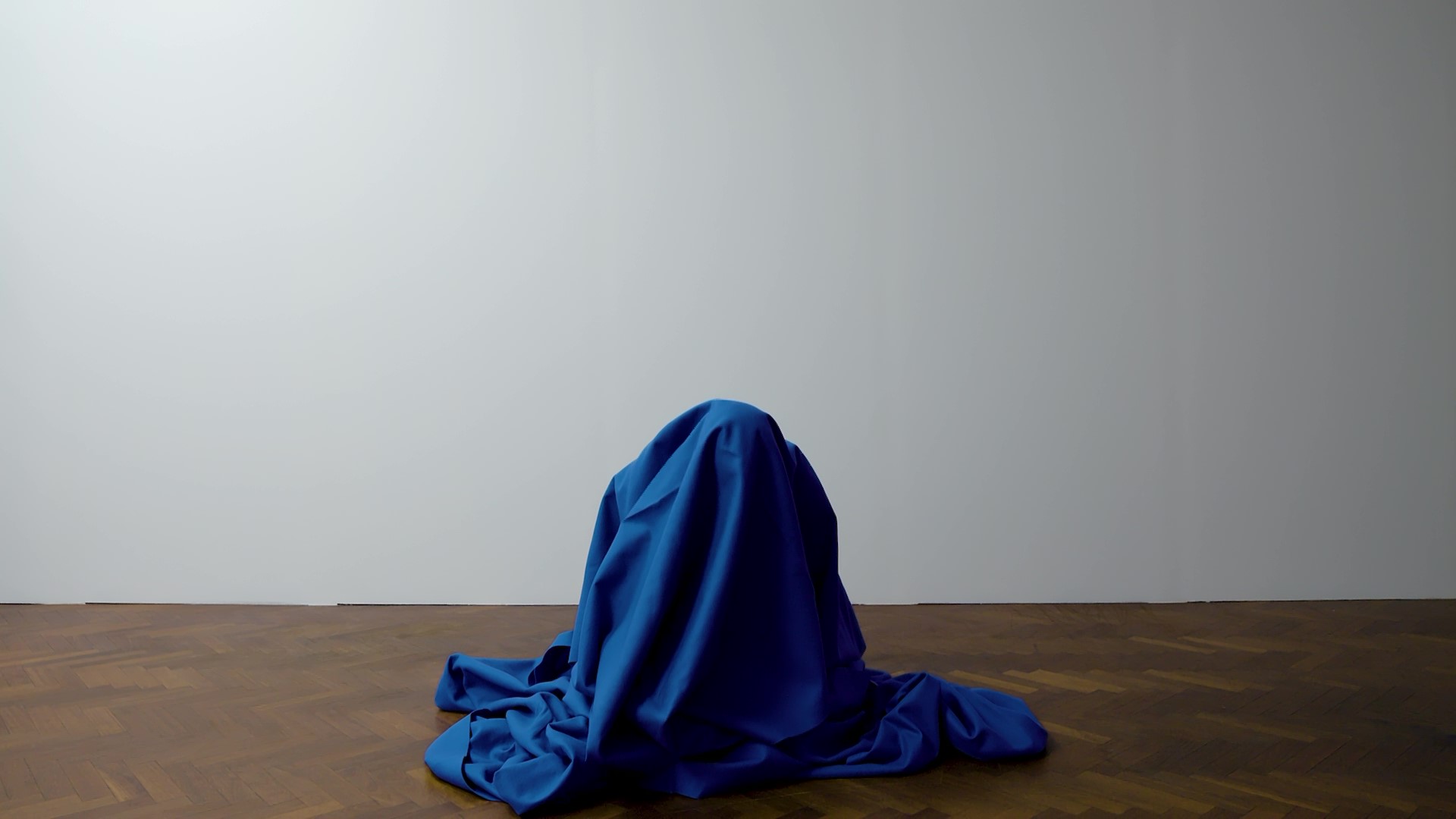 Pietà is a performance art piece of variable length in which the artist explores different positions and poses with a long piece of blue felt. The colour blue has long held spiritual significance for different religious traditions thanks to its association with the vast expanse of sky and the unfathomable depths of the ocean. Blue is also commonly associated with sadness and depression, typified by the expression: ‘feeling blue’. On a personal level Pietà combines these two themes, mental health and spirituality, to evoke a desire for healing or resurrection from an experience of depression which feels deathly.