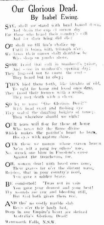Our Glorious Dead acknowledges the impact of war on the community of Wentworth Falls and highlights the important role that the Wentworth Falls School of Art played in the community’s response to war. The School of Arts was a site where young men volunteered to fight for their country, where valour and loss of life were commemorated during and after the war, and where celebrations were organised upon the signing of peace treaties. In 1919, the Wentworth Falls School of Arts Committee voted to mark the end of World War I by installing a new flagpole on site in order to fly the national flag. The flags in this work were each made from a single piece of fabric which was cut up and then sewn back together, echoing the violent effects of war on the social fabric of this community and the subsequent work by community members to repair the damage as best they can. The flags are made with a cross-pattern design which references, variously, medals of valour, grave markers of fallen soldiers, the humanitarian work of the international red cross, and the Christian faith with its promise of resurrection. The title of the work is taken from a poem of the same name, written by Wentworth Falls local Isabel Ewing and published in 1916.